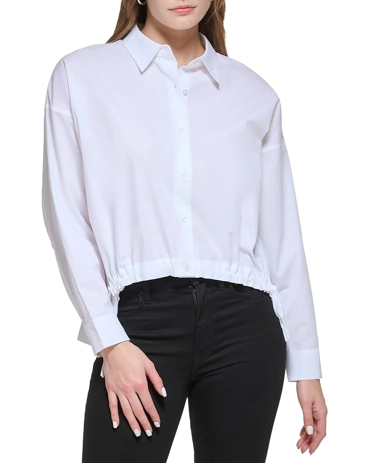 Ace the professional look wearing the sleek and stylish Calvin Klein® Cinch Waist High-Low Shirt.SKU: #9882671Relaxed fit.Classic collar.Button closure.Long sleeves with buttoned cuffs.Cinch waist.High-low hem.100% cotton.Machine wash cold.Imported.