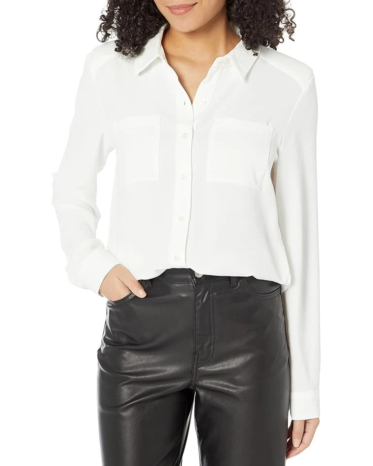The primary materials that compose this product contain a minimum of 20 percent recycled content.SKU: #9862237Calvin Klein® Long Sleeve Button Front with Collar. Point collar neckline and long sleeves with buttoned cuffs.