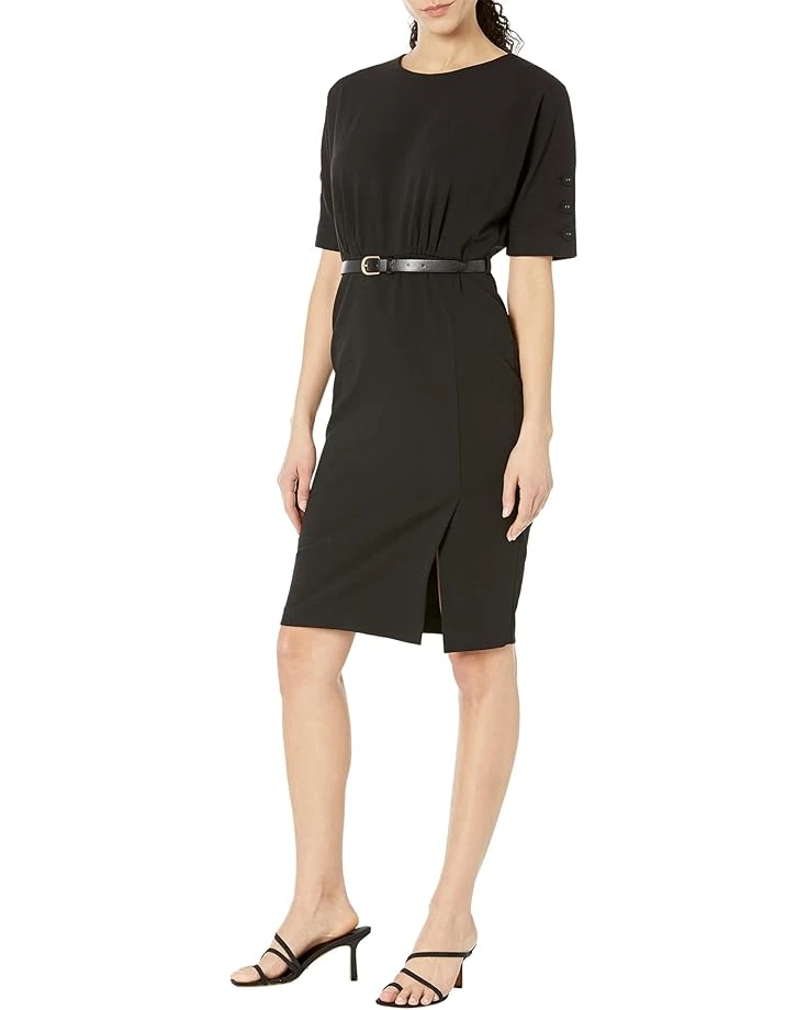 Stylize your effortless looks by donning the Calvin Klein® Scuba Crepe Dress with Belt and Sleeve Button Detail Dress.SKU: #9858874Crew neckline and short sleeves.Belt on the waist for adjustable fit.Short-length silhouette.Slit on the front.Intended to hit at the knee.94% polyester, 6% spandex.Dry-clean.Imported.Product measurements were taken using size 4. Please note that measurements may vary by size.Measurements: