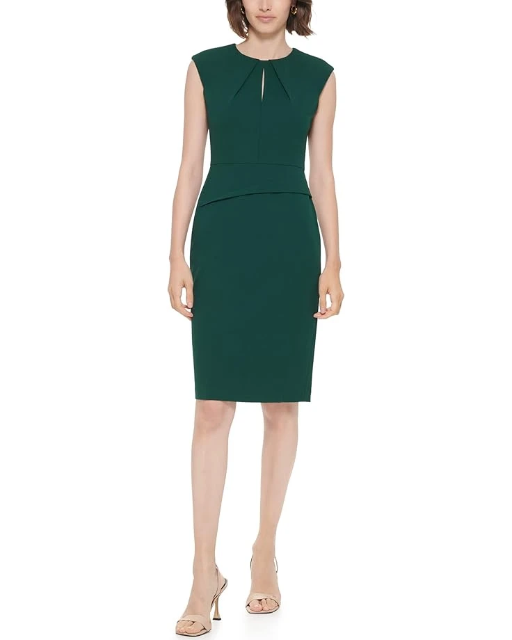 The primary materials that compose this product contain a minimum of 20 percent recycled content.SKU: #9823206Calvin Klein® Sleeveless Sheath Dress with Seam Detail. Sheath silhouette, knee-length dress featuring a round neckline with cutout detailing and sleeveless design. Raised seam detailing on the neckline and below the waist. Secured zippered closure on the back. 64% polyester, 31% recycled polyester, 5% spandex. Machine washable. Imported. Measurements: