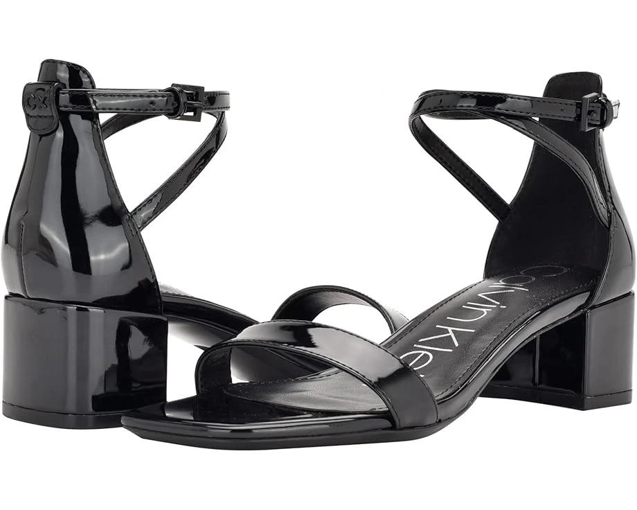 An essential pick for your regular days, the Calvin Klein® Tisa sandals elevate the grace and elegance of your look in no time. SKU: #9802928Glossy faux leather upper. Man-made lining and a cushioned footbed. Adjustable buckle closure on the ankle strap. Oblique square toe silhouette. Branding on the insole. Closed-back design ensures added support. Chunky block heel. Durable man-made outsole. Imported. Weight of footwear is based on a single item, not a pair.Measurements: