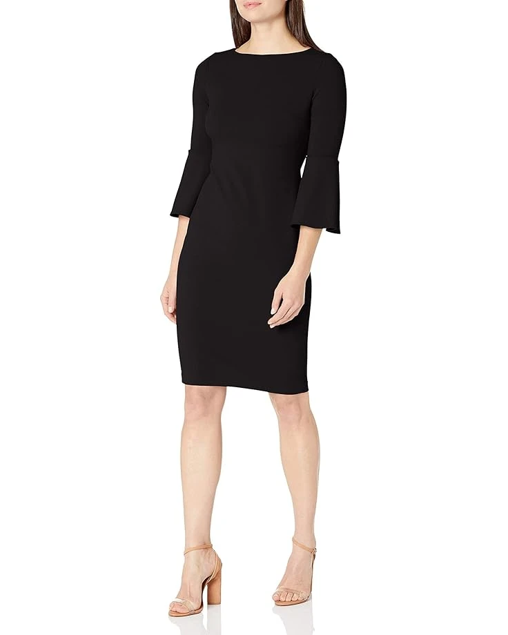 94% poly, 6% spandexSKU: #968843394% Polyester, 6% SpandexViet NamDry Clean OnlyA great wear to work dress that is perfect for desk to dinner3/4 Sleeveflattering fitzipper closureZip closure